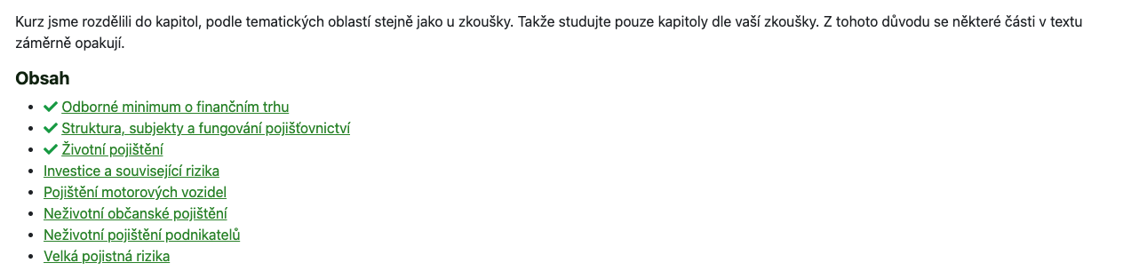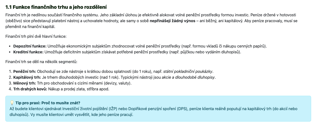 📚 Struktura podle zkoušky: Lekce přesně kopírují oficiální okruhy (životní, vozidla, majetek, podnikatelé). Studujete jen to, co reálně uvidíte u zkoušky.